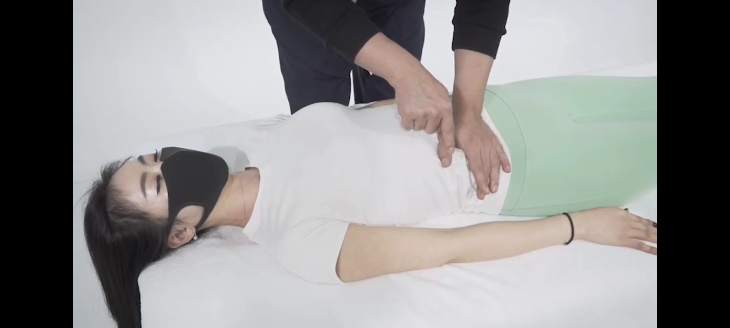 위쪽에 있는 갈비뼈를 누르지 않도록 조심하시고